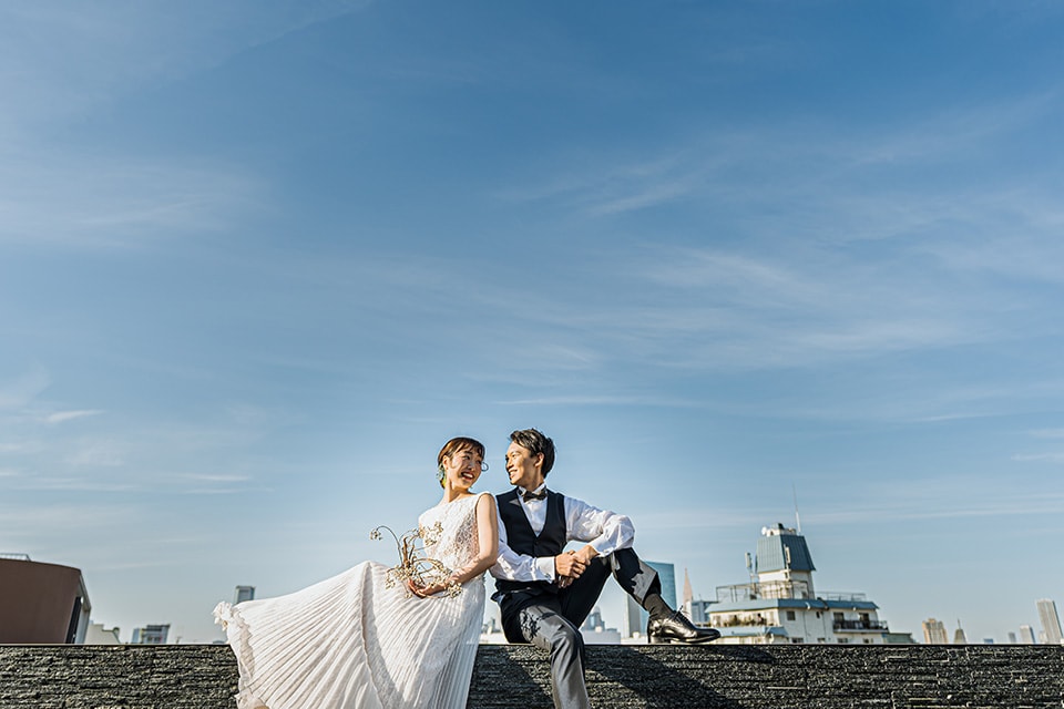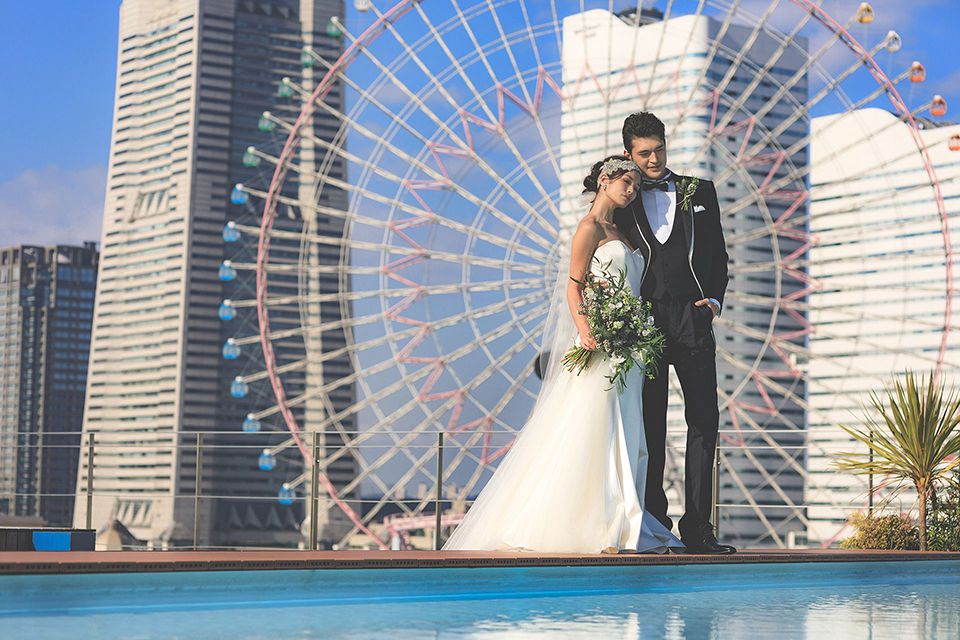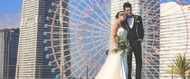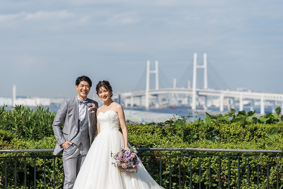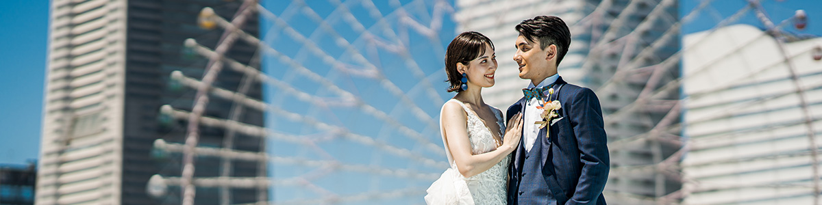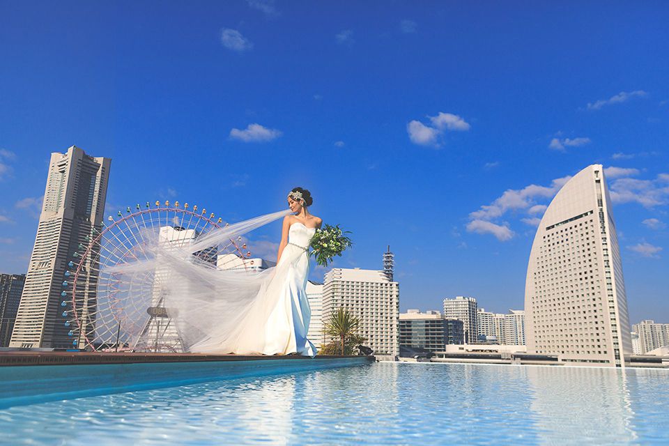 横浜みなとみらいを一望できる最高のロケーション。屋上ルーフからは一面に広がるパノラミックな海とみなとみらいの街並み・ベイブリッジを眺望できる、横浜でもBP Photo Studioだけの特別プランです。